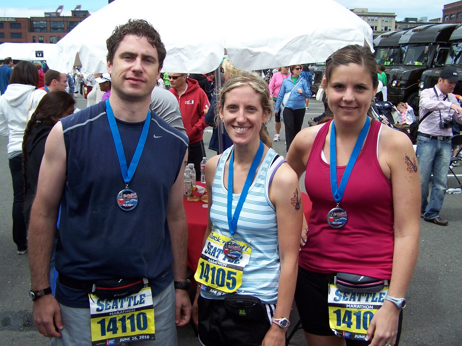 Hello out there! It's been awhile since I last blogged, however I was looking through pics and wanted to share! Last summer a few of us ran the Rock and Roll Marathon in Seattle (2010) It was a blast. And super hard!! That was my 3rd full marathon and 2nd time running the Rock & Roll. Yes as you can imagine, each time I run one of these 26.2 mile races...I question my sanity. I question it during the 20 weeks of training, and when I wake up at 4am to travel to the race and especially while running it. Crossing the finish line sure feels good..and a little awful since I could hardly walk. Here's a pic of the group we hung out with. Jon, Melia and I ran the full marathon and the rest, ran the half marathon.
